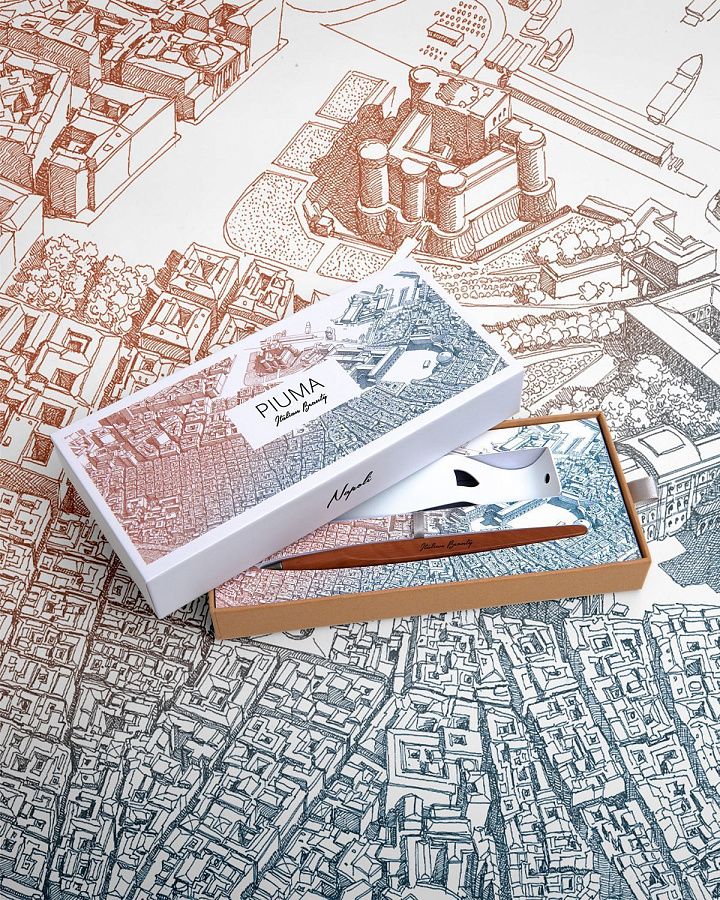 Вечная ручка Pininfarina Piuma Неаполь из лимитированной коллекции дизайнеров Pininfarina в сотрудничестве с Francesco Corni Foundation, посвященной красоте Италии и представленной 8 городами. Франческо Корни - выдающийся дизайнер из Модены, посвятивший свою жизнь популяризации истории и архитектуры. Используя трехмерное перспективное видение, он изучает наиболее значимые здания каждого города, выбирает наилучшую точку обзора, чтобы подчеркнуть их особенности, и прорисовывает детали в древней технике калиграфии. Дополняет видение мастера умелое использование цветов, по одному для каждого города. Для Неаполя дизайнер выбрал центральной точкой площадь Piazza del Plebiscito и светло-синий цвет, в результате подарочная коробка c ручкой Pininfarina PIUMA становится произведением искусства. PIUMA - ручка динамической формы в виде гусиного пера. Дизайнеры вдохновлялись Кодексом о полете птиц мастера Леонардо да Винчи, целью которого было понять тайну полета и который хранится сейчас в Королевской библиотеке Турина. Piuma находится в постоянном равновесии со своим центром тяжести благодаря белому стальному пьедесталу. Вечная ручка имеет необычный пишущий узел в виде наконечника Ethergraf®, изготовленного из сплава металлов по запатентованной технологии. Он не содержит свинец и алюминий, производится вручную итальянскими мастерами и практически не расходуется за десятилетия использования. При соприкосновении с поверхностью бумаги, происходит химическая реакция и наконечник оставляет серебристый след, который напоминает цвет графитового карандаша, но обладает большей стойкостью. Идеально пишет на каменной бумаге. На ручке стильный логотип Italian Beauty, она полностью сделана из дерева груши. Набор упакован в белую подарочную коробку.