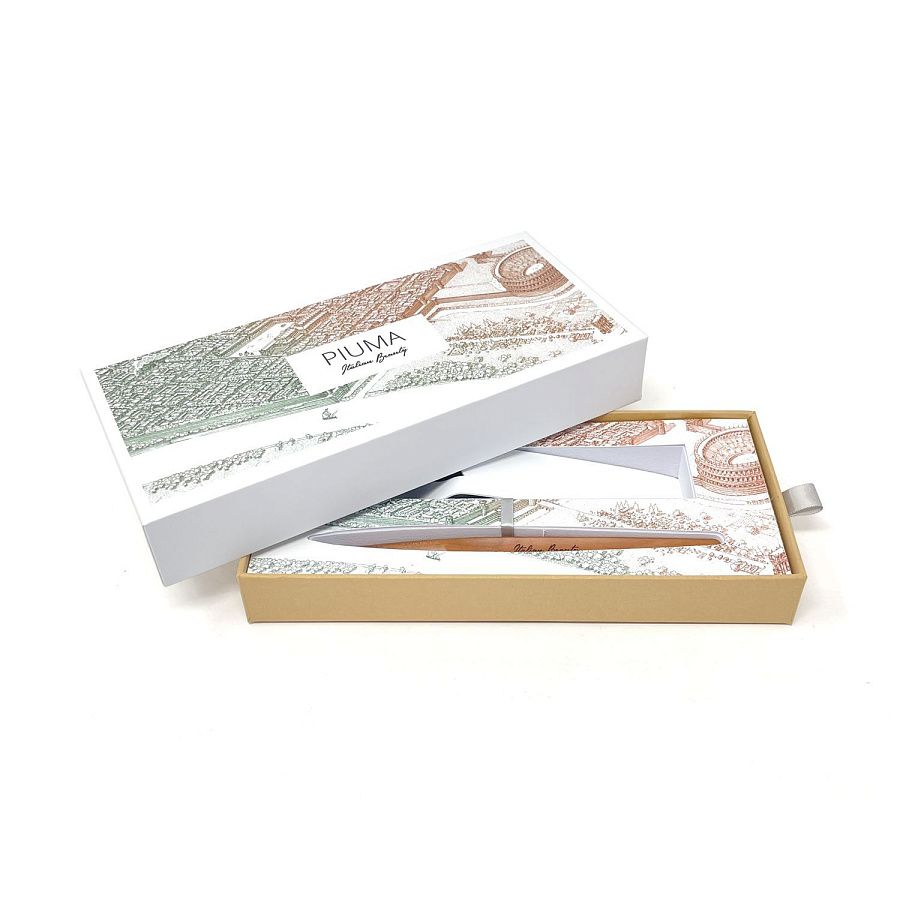 Шариковая ручка Pininfarina Piuma Верона из лимитированной коллекции дизайнеров Pininfarina в сотрудничестве с Francesco Corni Foundation, посвященной красоте Италии и представленной 8 городами. Франческо Корни - выдающийся дизайнер из Модены, посвятивший свою жизнь популяризации истории и архитектуры. Используя трехмерное перспективное видение, он изучает наиболее значимые здания каждого города, выбирает наилучшую точку обзора, чтобы подчеркнуть их особенности, и прорисовывает детали в древней технике калиграфии. Дополняет видение мастера умелое использование цветов, по одному для каждого города. Для Вероны дизайнер выбрал центральной точкой романский амфитеатр Arena di Verona и зеленый цвет, в результате подарочная коробка c ручкой Pininfarina PIUMA становится произведением искусства. PIUMA - ручка динамической формы в виде гусиного пера. Дизайнеры вдохновлялись Кодексом о полете птиц мастера Леонардо да Винчи, целью которого было понять тайну полета и который хранится сейчас в Королевской библиотеке Турина. Piuma находится в постоянном равновесии со своим центром тяжести благодаря белому стальному пьедесталу. На ручке стильный логотип Italian Beauty, она полностью сделана из дерева груши. В ручке используется шариковый стержень Schmidt ® S635 (D1) с синей пастой. Набор упакован в белую подарочную коробку.
