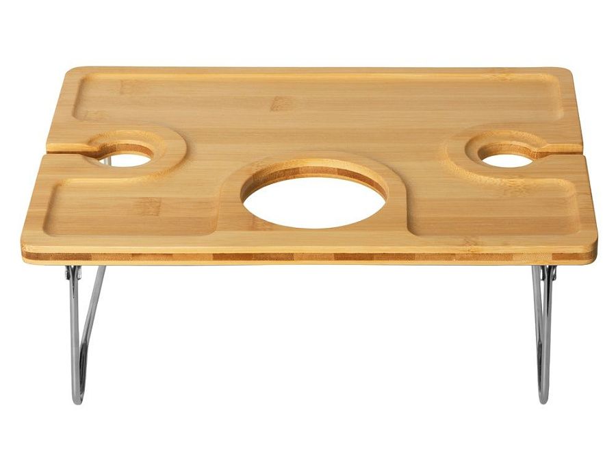 К сумке в наборе идет складной столик из натурального бамбука. Изготовленный из экологически чистого и долговечного бамбука, этот столик не только красив, но и практичен. Его легкие и прочные металлические ножки складываются одним движением, обеспечивая компактное хранение и удобную транспортировку. Возьмите его с собой на пикник, на пляж, на дачу или используйте как стильный приставной столик дома – он везде будет к месту!