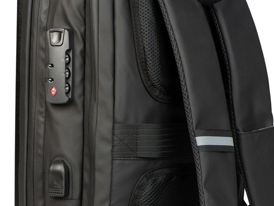 Водостойкий бизнес-рюкзак с пластиковой панелью спереди выглядит стильно и обеспечивает бережное хранение ваших личных вещей. Подходит для передвижений по городу и деловых поездок. 2 вместительных отделения позволяют разместить все необходимое: большое отделение для одежды с фиксирующими ремнями и органайзером, меньшее отделение с карманами для ноутбука и планшета и сетчатым органайзером. Несанкционированный доступ к содержимому вашего рюкзака будет затруднён благодаря кодовому замку и прочной пластиковой панели спереди. В рюкзаке предусмотрено много дополнительных удобств для использования: