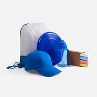 картон; бутылка, тарелка - пластик; бейсболка - хлопок 100%, плотность 260 г/м²; рюкзак - полиэстер 100%, 210d