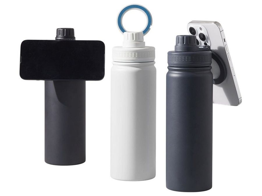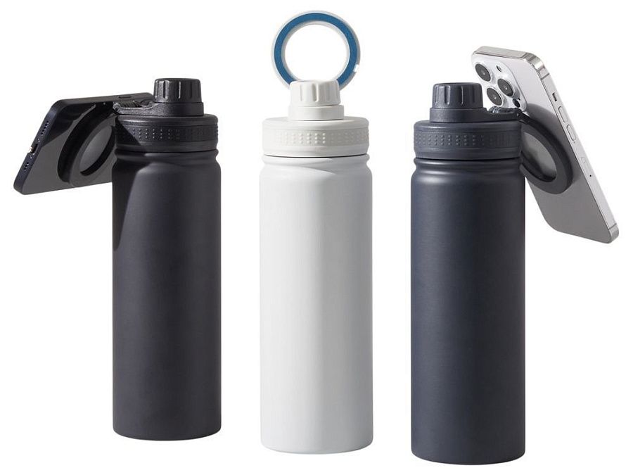 Современные технологии и стильный дизайн объединились в одной бутылке! Спортивная бутылка с магнитным держателем MagSafe поможет вам всегда держать водный баланс в норме и сделает жизнь удобнее. Благодаря магнитному держателю бутылка надежно удерживает iPhone 12 версии и новее. Магнитное крепление подходит также и для любого смартфона, т.к. в комплекте есть металлическое кольцо с клейким слоем. Кольцо наклеивается на заднюю крышку или чехол смартфона, и вы можете крепить смартфон к бутылке за секунду. Объем 600мл.
