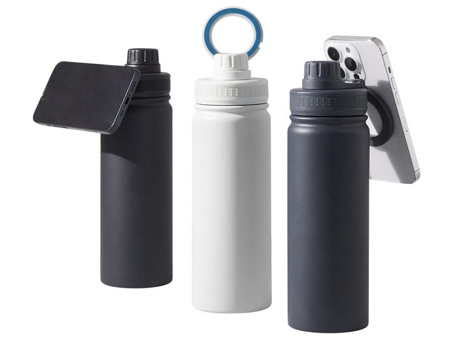 Современные технологии и стильный дизайн объединились в одной бутылке! Спортивная бутылка с магнитным держателем MagSafe поможет вам всегда держать водный баланс в норме и сделает жизнь удобнее. Благодаря магнитному держателю бутылка надежно удерживает iPhone 12 версии и новее. Магнитное крепление подходит также и для любого смартфона, т.к. в комплекте есть металлическое кольцо с клейким слоем. Кольцо наклеивается на заднюю крышку или чехол смартфона, и вы можете крепить смартфон к бутылке за секунду. Объем 600мл.