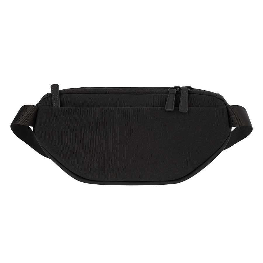 Внутри — карман-органайзер, снаружи, на тыльной стороне, — скрытый карман. Регулируемый ремень позволяет носить сумку на плече, через грудь или на поясе.