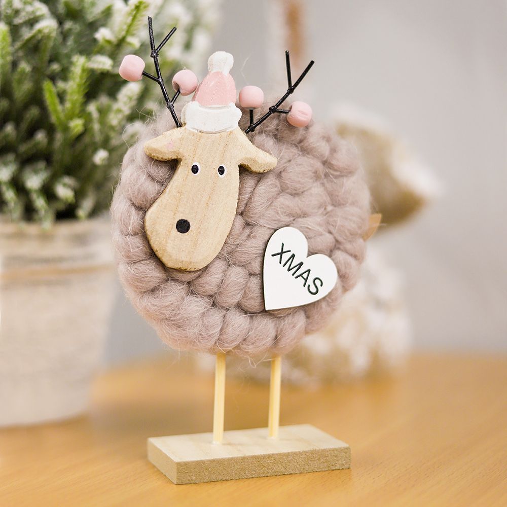 Декоративное украшение рождественские олени Магиш - выполнены из текстильных материалов. Деревянная подставка.