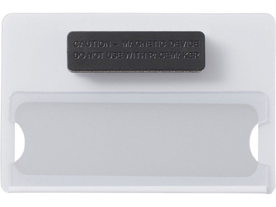Прочный магнитный бейдж, изготовленный из пластика. Магнитное крепление позволяет быстро прикрепить и снять бейдж без лишних усилий и проколов на ткани.