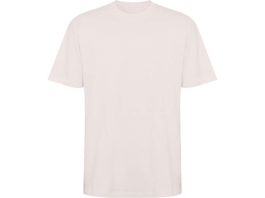 Оверсайз футболка с коротким рукавом. Круглый вырез горловины обработан рибом 2х1. Боковые швы. Широкая двойная отстрочка по рукавам и низу.