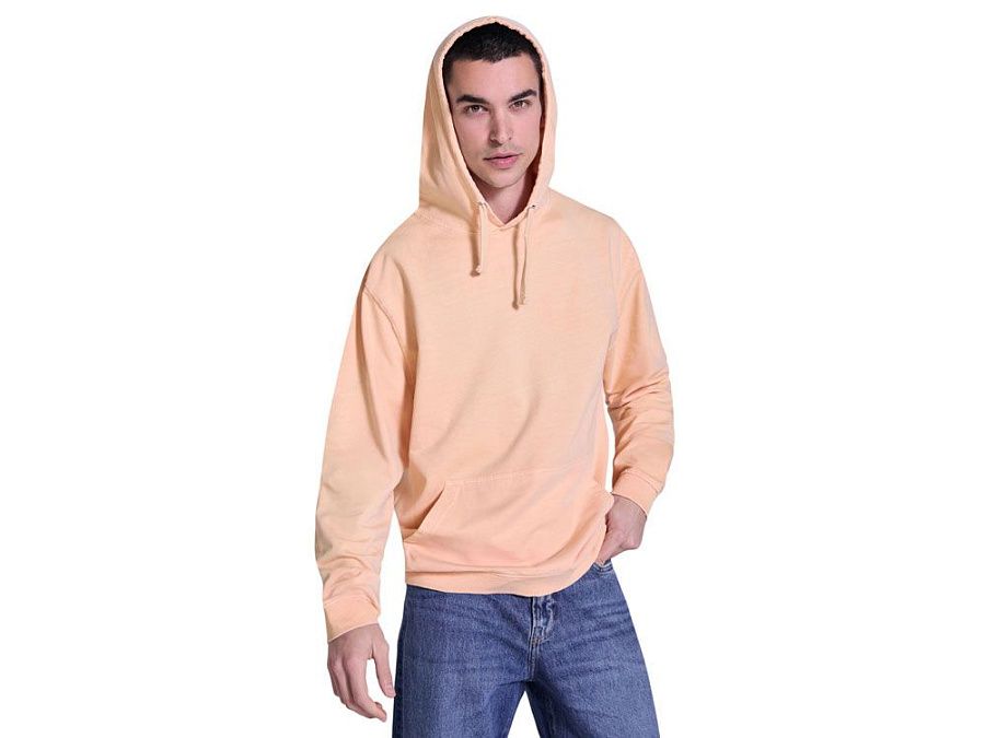 Унисекс худи с подкладкой капюшона в тон изделию, 100% хлопковый материал с выбеленной стиркой. Манжеты и низ изделия из риба 2х1 . Плоские шнурки в тон. Отсрочки в тон. Карман кенгуру.