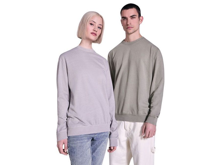 Свитшот унисекс с круглым вырезом 100% хлопок, с аксидной стиркой, риб 2х1 на манжетах, горловине и низу в тон. Усиленные швы по манжетам, низу и проймам. Шов по горловине в тон