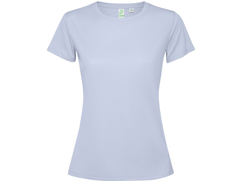 Женская футболка с коротким рукавом из технологичного полотна. Отстрочки в тон. Спинка с удлинением. Боковые швы со смещением вперед.