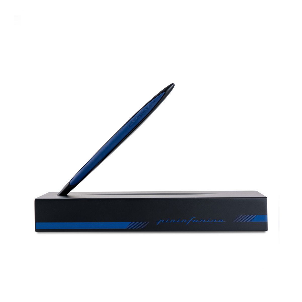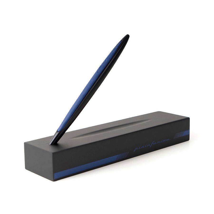 Флагманская ручка модели Cambiano Race Blue дизайнерского дома Pininfarina сочетает в себе различные материалы, технологичность, элегантные линии и смелые дизайнерские решения. Она предназначена для тех, кто любит спортивный дизайн и стремится к уникальному опыту письма. Алюминиевый корпус ручки окрашен в черный цвет, а синие эргономичные резиновые вставки мгновенно вызывают ассоциации с миром автоспорта и служат для оптимального захвата. Изысканная подставка из черного дерева, служащая одновременно коробкой для ручки, вручную покрыта черным лаком и позволяет превратить этот набор в уникальный арт-объект на вашем столе. Этот набор полностью изготовлен вручную, идеально воплощает итальянское мастерство, дух гонок и является символом высшего качества и эксклюзивности. Вечная ручка имеет необычный пишущий узел в виде наконечника Ethergraf, который изготовлен из сплава металлов по запатентованной технологии. Он не содержит свинец и алюминий, производится вручную итальянскими мастерами и практически не расходуется за десятилетия использования. При соприкосновении с поверхностью бумаги, происходит химическая реакция и наконечник оставляет серебристый след, который напоминает цвет графитового карандаша, но обладает большей стойкостью. Вес ручки 39 гр, длина 16 см.
