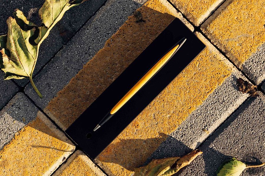 Флагманская ручка модели Cambiano Race Yellow дизайнерского дома Pininfarina сочетает в себе различные материалы, технологичность, элегантные линии и смелые дизайнерские решения. Она предназначена для тех, кто любит спортивный дизайн и стремится к уникальному опыту письма. Алюминиевый корпус ручки окрашен в черный цвет, а желтые эргономичные резиновые вставки мгновенно вызывают ассоциации с миром автоспорта и служат для оптимального захвата. Изысканная подставка из черного дерева, служащая одновременно коробкой для ручки, вручную покрыта черным лаком и позволяет превратить этот набор в уникальный арт-объект на вашем столе. Этот набор полностью изготовлен вручную, идеально воплощает итальянское мастерство, дух гонок и является символом высшего качества и эксклюзивности. Вечная ручка имеет необычный пишущий узел в виде наконечника Ethergraf, который изготовлен из сплава металлов по запатентованной технологии. Он не содержит свинец и алюминий, производится вручную итальянскими мастерами и практически не расходуется за десятилетия использования. При соприкосновении с поверхностью бумаги, происходит химическая реакция и наконечник оставляет серебристый след, который напоминает цвет графитового карандаша, но обладает большей стойкостью. Вес ручки 39 гр, длина 16 см.