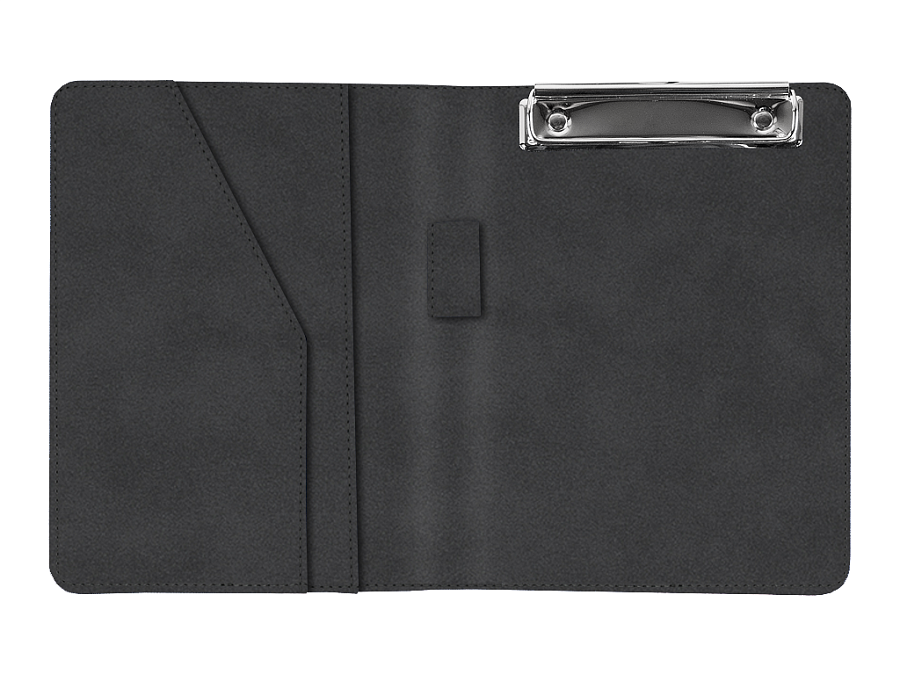 Папка Solo с мощным зажимом идеально подходит для документов. Внутри папки есть карман для хранения дополнительных бумаг и петля для ручки.