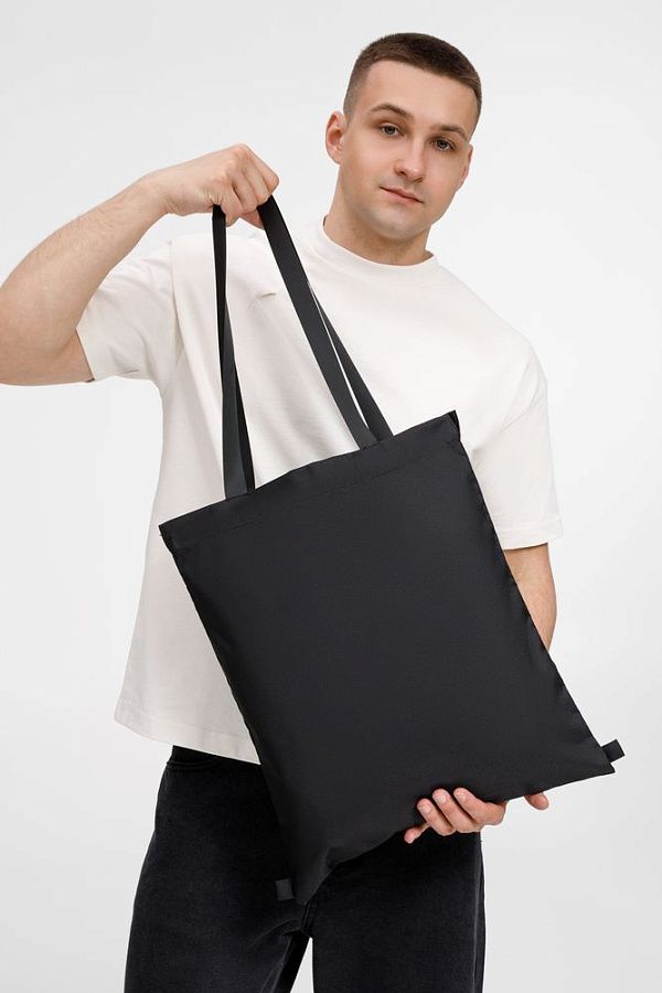 Базовый шопер разработан в рамках единой коллекции одежды и аксессуаров и легко комбинируется с ее элементами. Специально спроектированные лекала и технологии пошива открывают простор для любых вариантов кастомизации и нанесения изображений. На видимой части изделий нет лейблов с айдентикой бренда, а название бренда с уходника легко удалить.