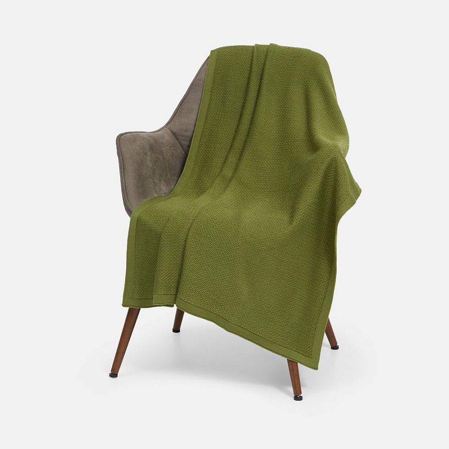 Плед из полушерстяной пряжи, поэтому прекрасно согревает и неприхотлив в уходе.