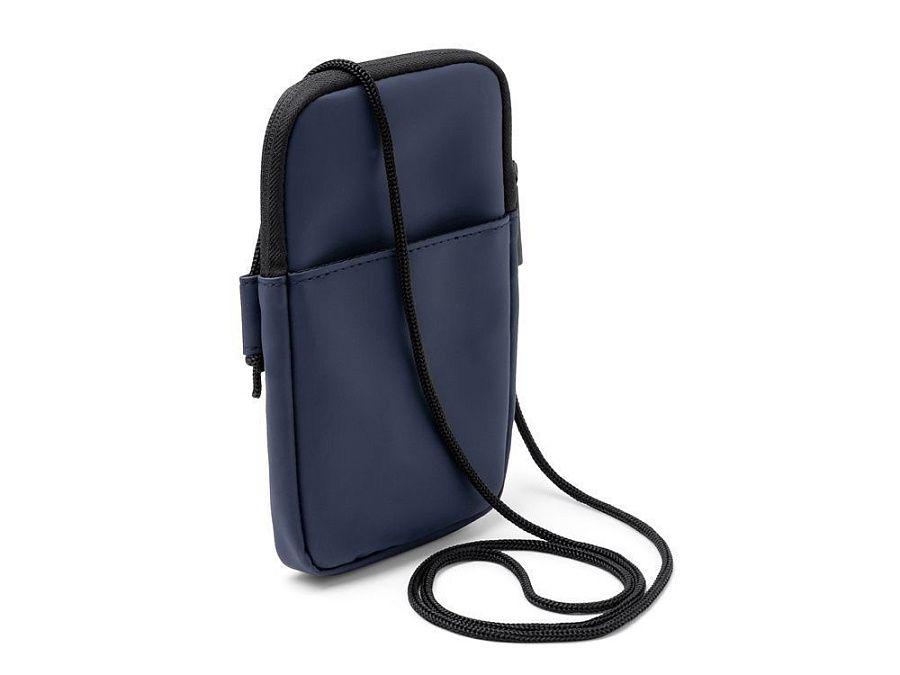Сумка для мобильного телефона из искусственной кожи. Основное отделение закрывается на молнию. Внешний карман и регулируемый ремешок для переноски.