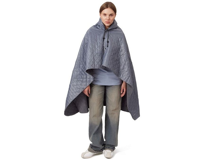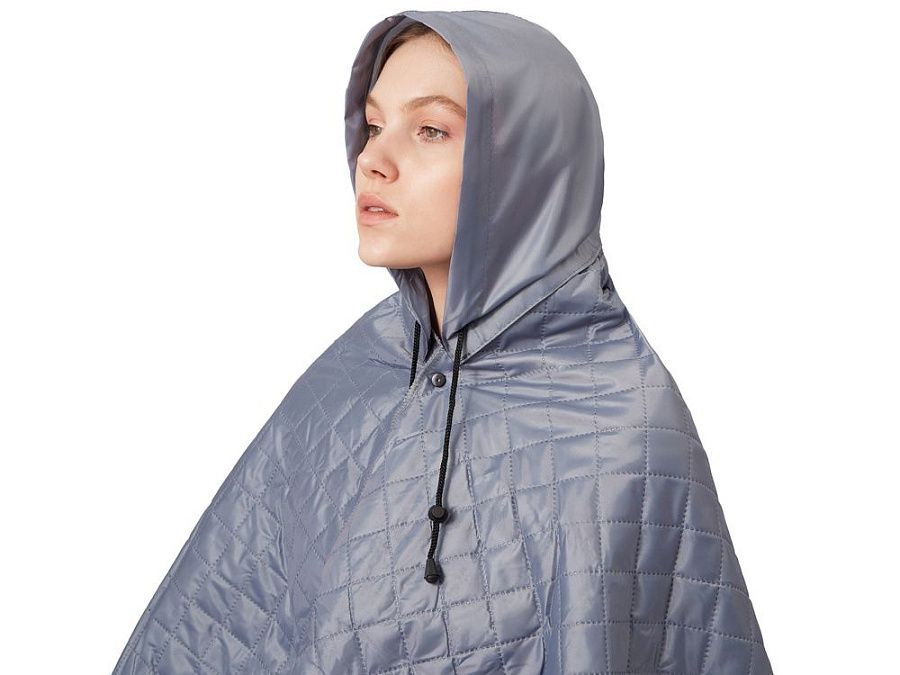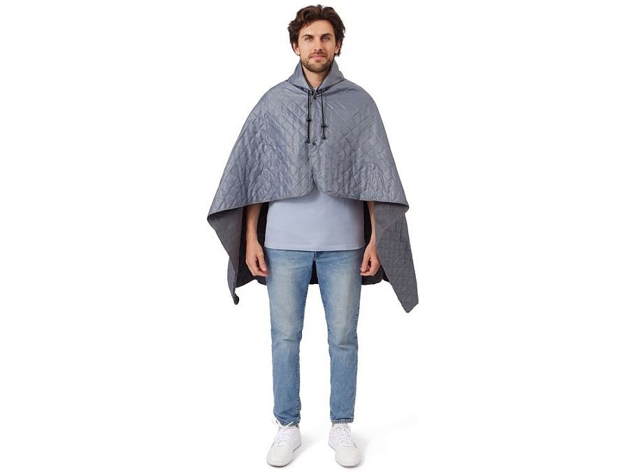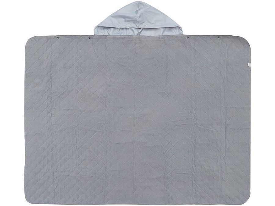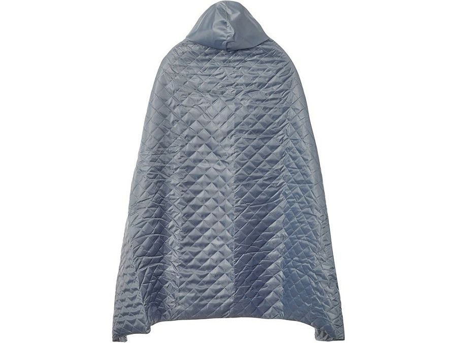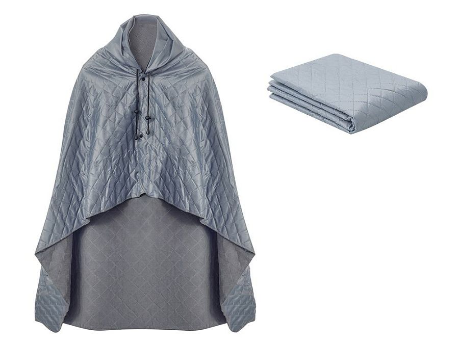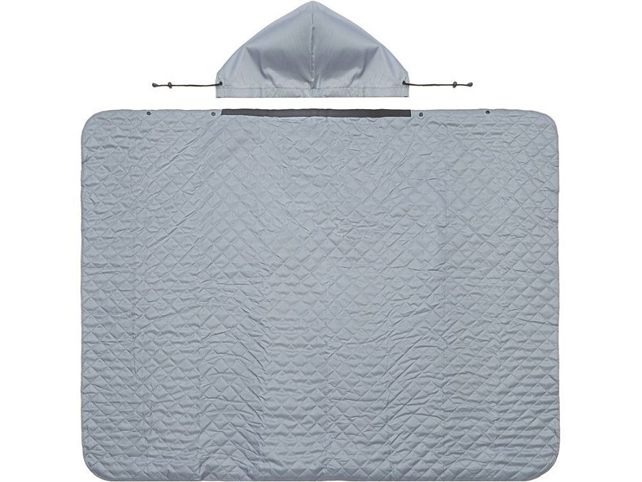 На внутренней стороне из флиса приятно и тепло сидеть, а наружная сторона из полиэстера с водоотталкивающим покрытием не позволяет пледу намокнуть или сильно испачкаться. Для больше удобства использования пледа во время дождя в комплекте идет капюшон, который фиксируется с помощью " липучки". Накинув плед на плечи, застегните его на кнопки вверху и наденьте капюшон. Вы не промокните во время неожиданного дождя!