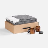 плед - шерсть, 15%; хлопок, 5%; полиэстер, 60%; акрил, 20%, плотность 200 г/м²; подсвечник - стекло, крышка - пластик; свеча - парафин, соевый воск, парфюмерная композиция; коробка - микрогофрокартон, Т-23Е