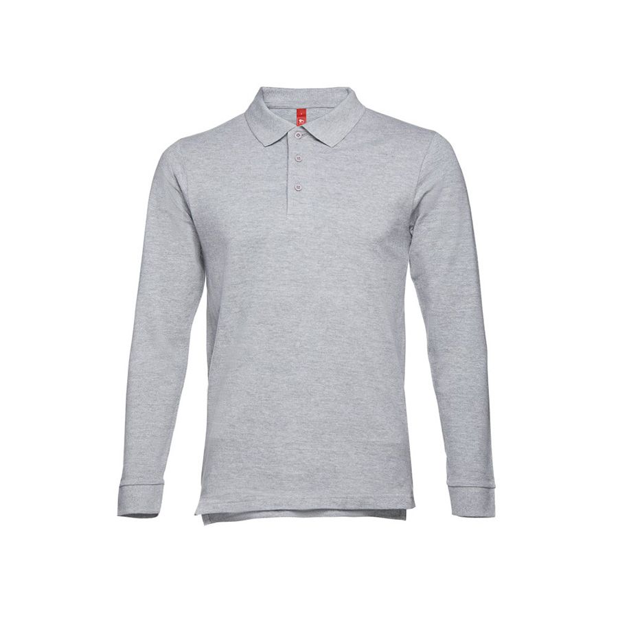 Мужская рубашка-поло с длинным рукавом из хлопковой ткани-пике. Полотно футболки упругое и гладкое благодаря обработке ферментами "enzyme wash" и сохраняет форму при стирке. Модель полуприлегающего силуэта. Благодаря манжете из риба 1х1 рукав смотрится очень аккуратно. Воротник также выполнен из риба 1х1, внутри ворота - укрепляющая тесьма по горловине. Планка с 3 пуговицами в цвет основной ткани изделия. Запасная пуговица на ярлыке во внутреннем боковом шве.Цвет, близкий к Pantone Cool Grey 8 C