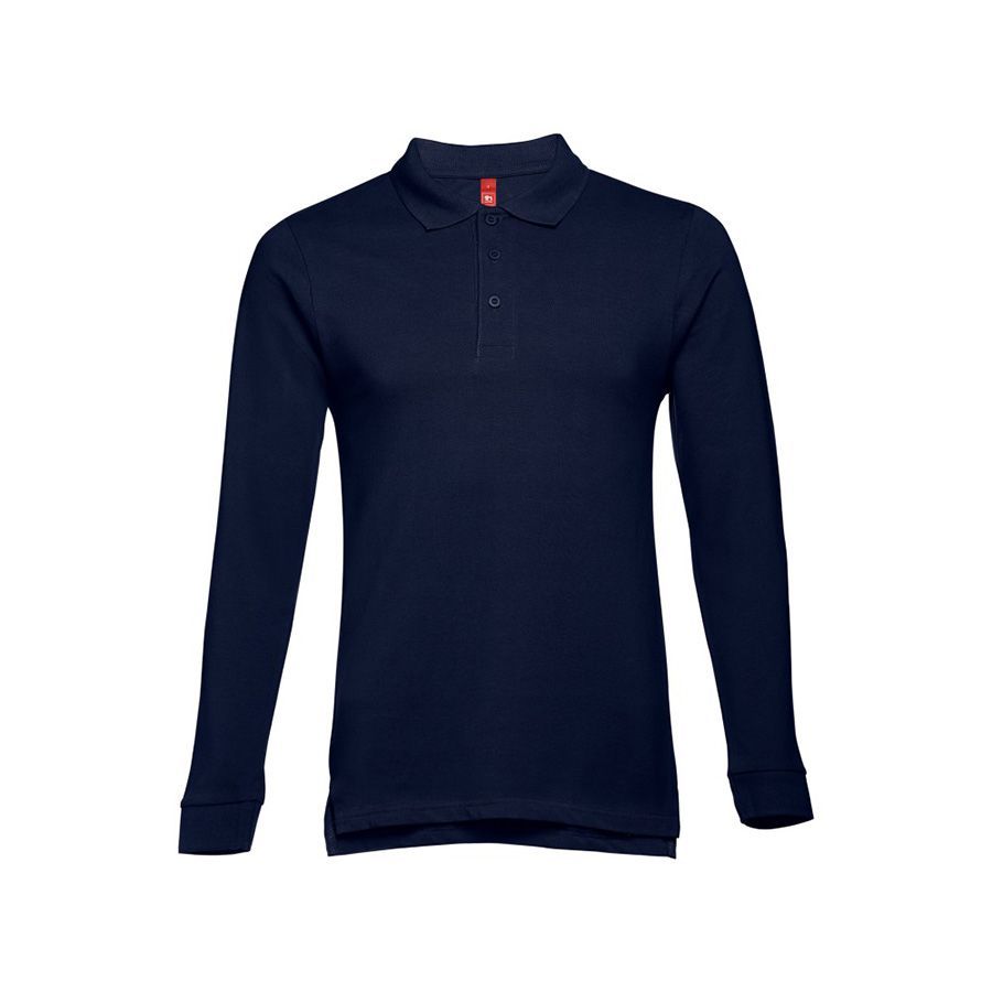 Мужская рубашка-поло с длинным рукавом из хлопковой ткани-пике. Полотно футболки упругое и гладкое благодаря обработке ферментами "enzyme wash" и сохраняет форму при стирке. Модель полуприлегающего силуэта. Благодаря манжете из риба 1х1 рукав смотрится очень аккуратно. Воротник также выполнен из риба 1х1, внутри ворота - укрепляющая тесьма по горловине. Планка с 3 пуговицами в цвет основной ткани изделия. Запасная пуговица на ярлыке во внутреннем боковом шве.Цвет, близкий к Pantone 296 C
