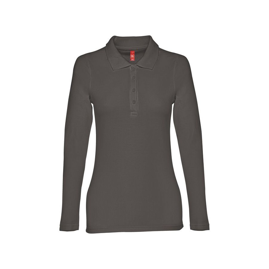 Женская рубашка-поло с длинным рукавом из хлопковой ткани-пике. Полотно футболки упругое и гладкое благодаря обработке ферментами "enzyme wash" и сохраняет форму при стирке. Модель приталенного силуэта. Благодаря манжете из риба 1х1 рукав смотрится очень аккуратно. Воротник также выполнен из риба 1х1, внутри ворота - укрепляющая тесьма по горловине. Планка с 3 пуговицами в цвет основной ткани изделия. Запасная пуговица на ярлыке во внутреннем боковом шве.Цвет, близкий к Pantone Cool Grey 10 C