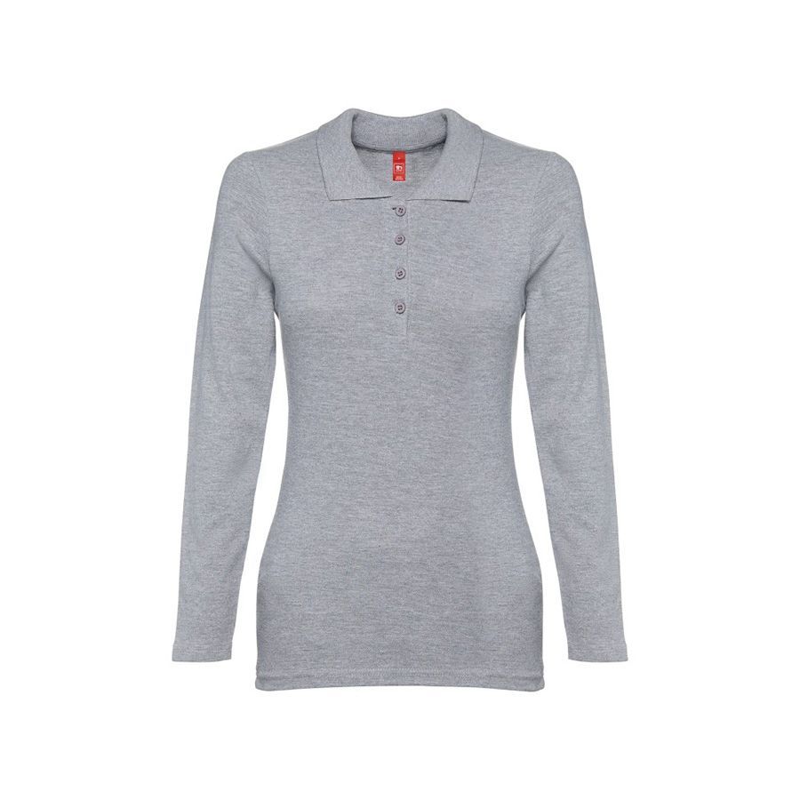 Женская рубашка-поло с длинным рукавом из хлопковой ткани-пике. Полотно футболки упругое и гладкое благодаря обработке ферментами "enzyme wash" и сохраняет форму при стирке. Модель приталенного илуэта. Благодаря манжете из риба 1х1 рукав смотрится очень аккуратно. Воротник также выполнен из риба 1х1, внутри ворота - укрепляющая тесьма по горловине. Планка с 3 пуговицами в цвет основной ткани изделия. Запасная пуговица на ярлыке во внутреннем боковом шве.Цвет, близкий к Pantone Cool Grey 8 C