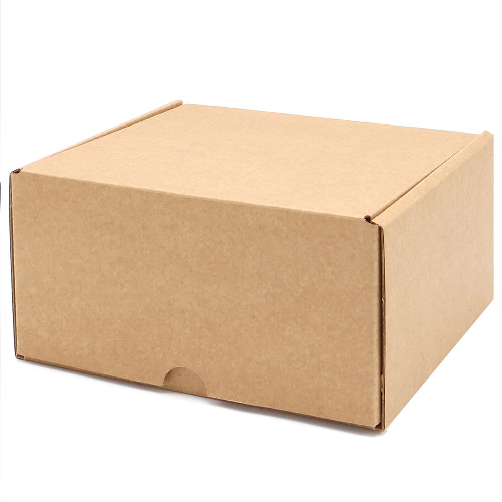 Самосборная коробка из бурого микрогофрокартона с внутренними размера 15,5х15,1х8 см.