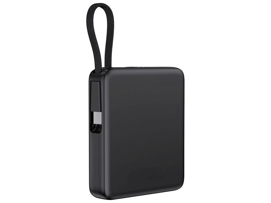 - Встроенный кабель Type-C и он же петелька для переноски: Современный стандарт Type-C, подходящий для зарядки всех последних популярных смартфонов, включая iPhone. Кабель также выполняет роль удобной петельки