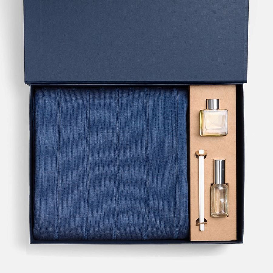 - Подарочные наборы с пледом синего цвета