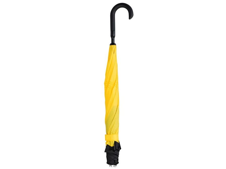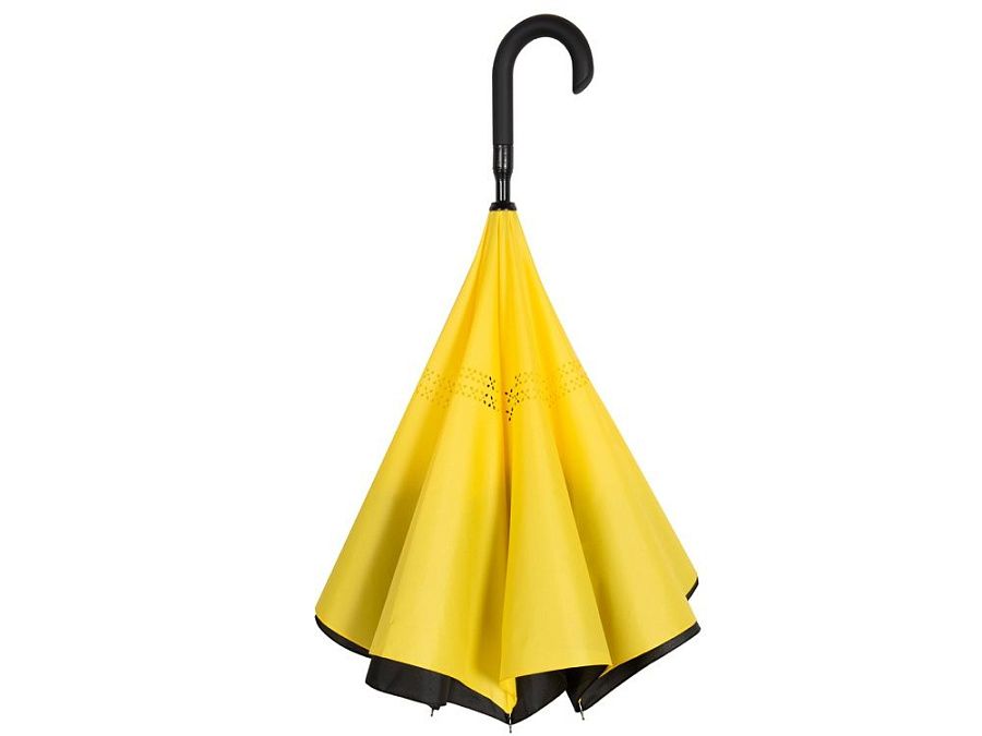 Зонт с обратным сложением складывается "внутрь". Очень удобен в использовании, например, во время посадки в машину при складывании вода остается внутри купола. Для просушки зонт можно поставить вертикально на пол в сложенном виде, что позволяет воде стекать без раскрытия зонта. Двойной купол из 190Т эпонжа. Ручка с мягким покрытием soft-touch для большего комфорта.