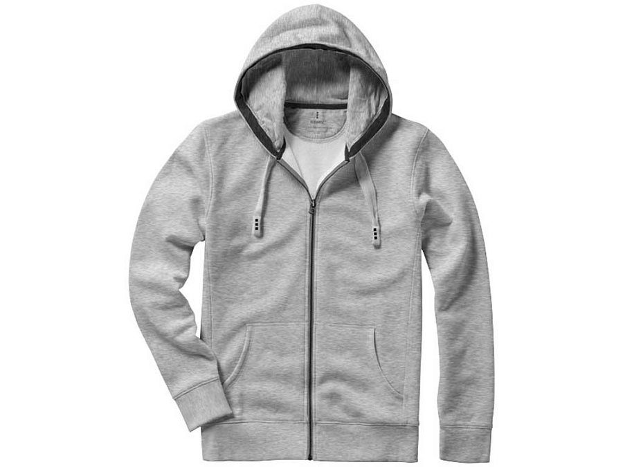 Свитер Arora с капюшоном и застежкой-молнией на всю длину. Стандартный покрой. Резинка 2х2 на боковых вставках, поясе и манжетах. Карман кенгуру. Мужская и женская модели с завязками на капюшоне. Подкладка внутри капюшона. Подкладка на полумесяце. Атласная лента внутри горловины. Принт лого сзади в тон изделия. Серебристые люверсы с лого. Трикотаж: 80% хлопок и 20% полиэстер, чесаная внутренняя сторона. 300 г/м².