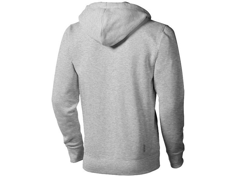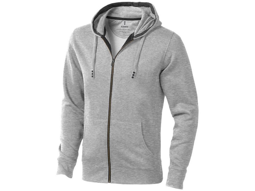 Свитер Arora с капюшоном и застежкой-молнией на всю длину. Стандартный покрой. Резинка 2х2 на боковых вставках, поясе и манжетах. Карман кенгуру. Мужская и женская модели с завязками на капюшоне. Подкладка внутри капюшона. Подкладка на полумесяце. Атласная лента внутри горловины. Принт лого сзади в тон изделия. Серебристые люверсы с лого. Трикотаж: 80% хлопок и 20% полиэстер, чесаная внутренняя сторона. 300 г/м².