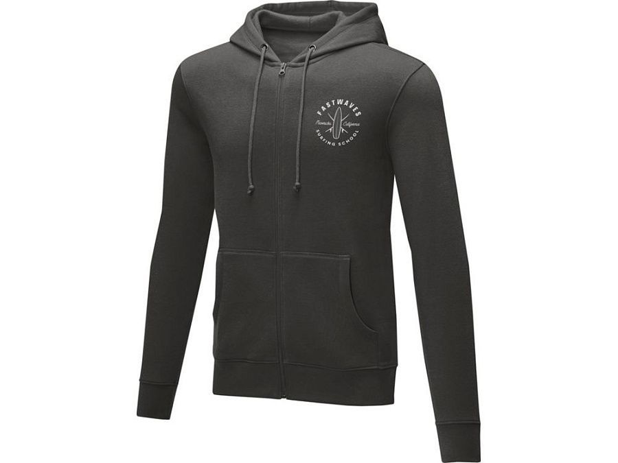 Мужская толстовка на молнии Theron. Основная этикетка, которую можно оторвать или отрезать, без неудобных пришитых ярлыков. Завязки на капюшоне. Расположенная по центру молния. Карман «кенгуру». С подшивкой из гладкого трикотажа в рубчик. С манжетами из гладкого трикотажа в рубчик. Внутренняя сторона покрыта ворсом. Тесьма из основного материала по внутренней стороне горловины. Трикотаж 50% Хлопок, 50% Полиэстер, 240 g/m2.