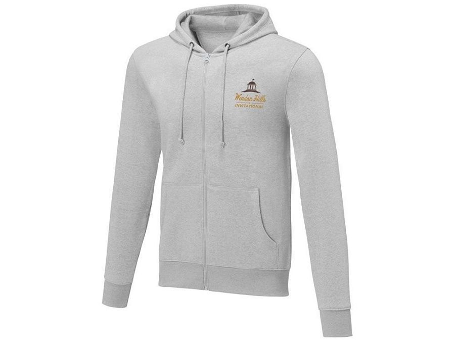Мужская толстовка на молнии Theron. Основная этикетка, которую можно оторвать или отрезать, без неудобных пришитых ярлыков. Завязки на капюшоне. Расположенная по центру молния. Карман «кенгуру». С подшивкой из гладкого трикотажа в рубчик. С манжетами из гладкого трикотажа в рубчик. Внутренняя сторона покрыта ворсом. Тесьма из основного материала по внутренней стороне горловины. Трикотаж 50% Хлопок, 50% Полиэстер, 240 g/m2.