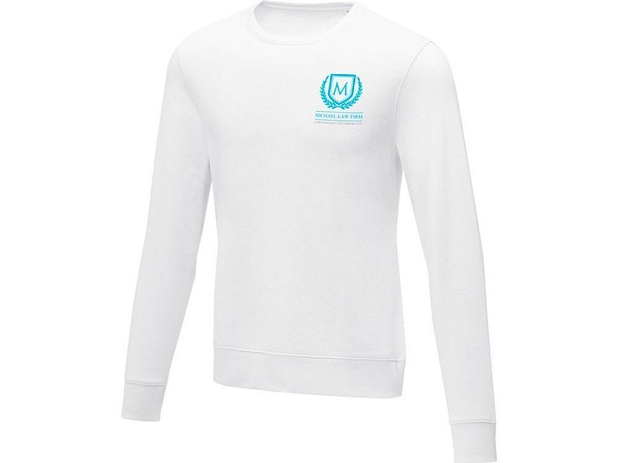 Мужской свитер Zenon с круглым вырезом. Основная этикетка, которую можно оторвать или отрезать, без неудобных пришитых ярлыков. Круглый вырез. Воротник из гладкого трикотажа. С манжетами из гладкого трикотажа в рубчик. С подшивкой из гладкого трикотажа в рубчик. Внутренняя сторона покрыта ворсом. Самоклеящаяся лента на воротнике. Трикотаж 50% Хлопок, 50% Полиэстер, 240 g/m2.