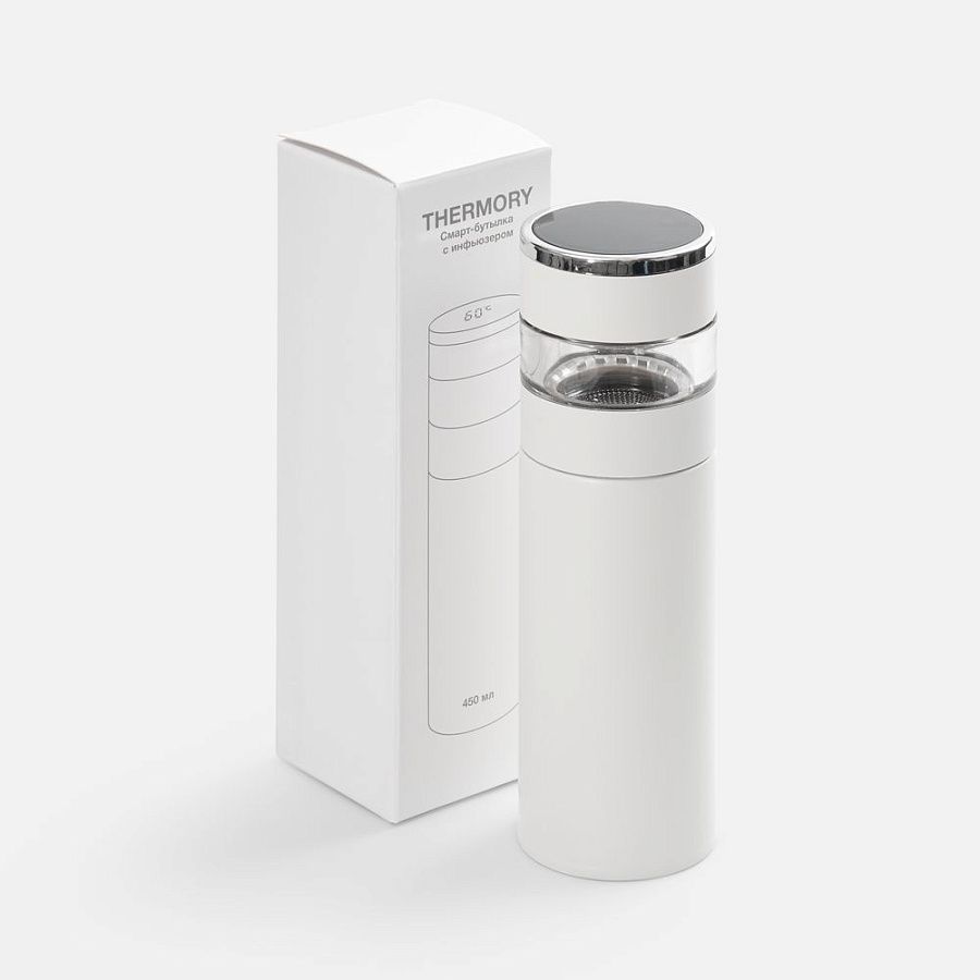 Умная термобутылка для заваривания Thermory отображает температуру жидкости на ЖК-дисплее: точные данные собирает встроенный в крышку датчик. Стенки из нержавеющей стали и вакуумная изоляция корпуса сохраняют напитки горячими (60 °C) в течение 8 часов или прохладными (10 °C) в течение 12 часов.