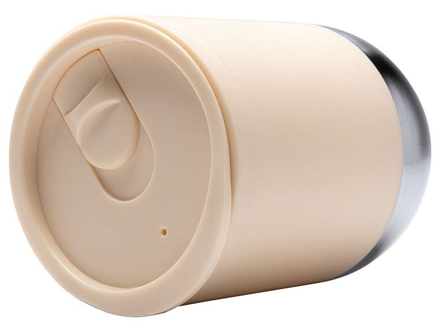Термокружка с двойными стенками из переработанного полипропилена и дном из нержавеющей стали 304. В комплекте крышка-слайдер. Объём: 290 мл. Поставляется в экологичной коробке.