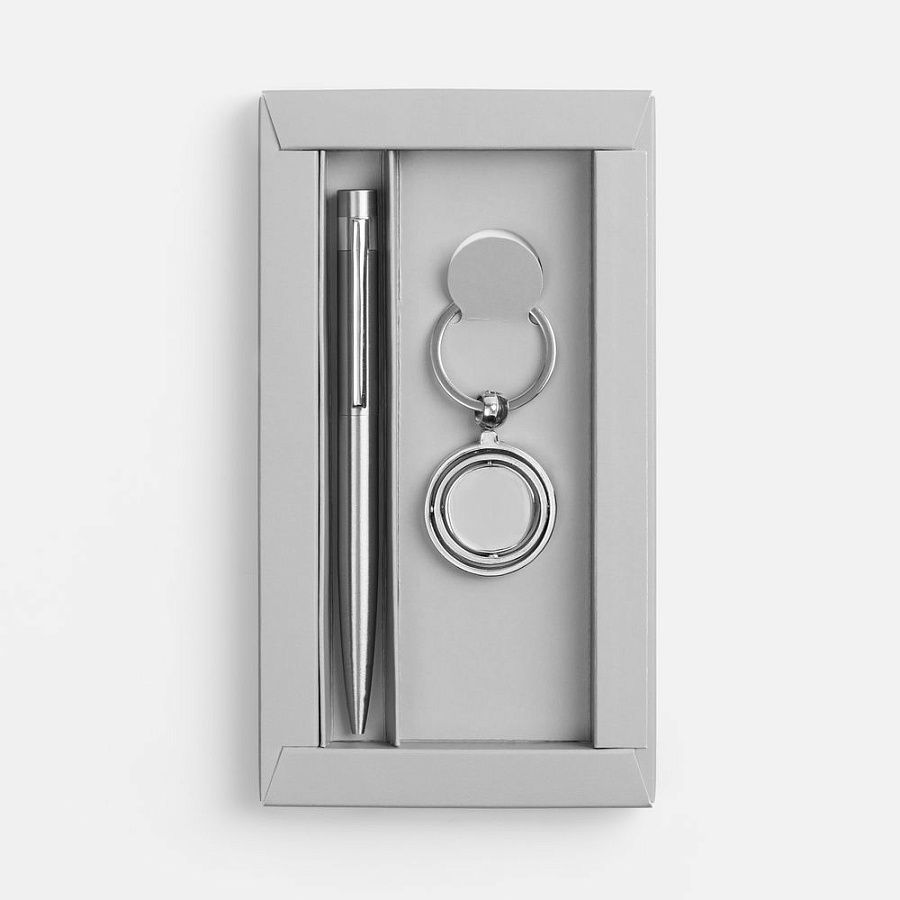 ручка - сталь, переработанная; брелок - металл; коробка - картон