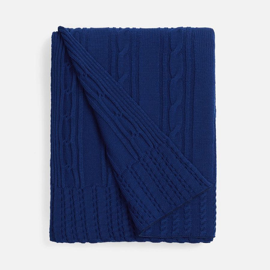 Тонкое переплетение вертикальных кос-жгутов создает благородный стиль, где простота линий встречается с изысканной рельефной текстурой. Плед из мягкого акрила сохраняет тепло, оставаясь удивительно легким и воздушным.