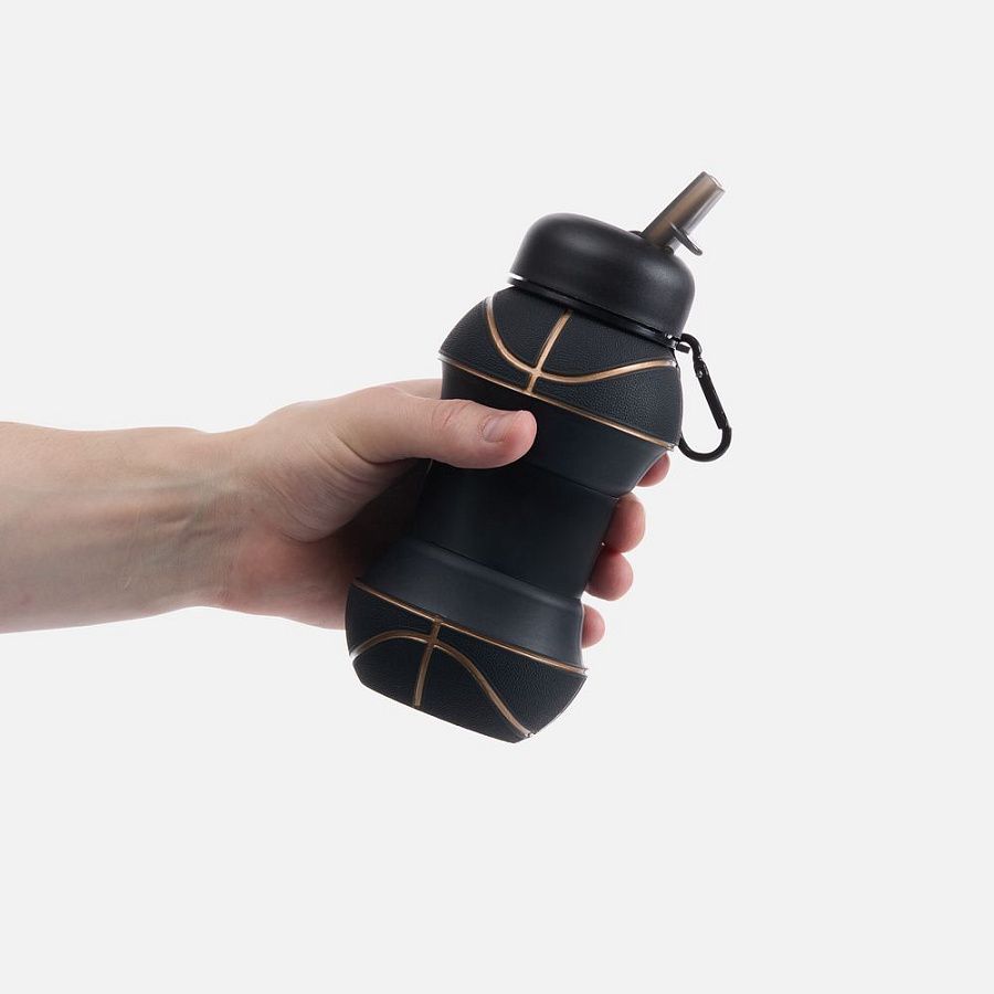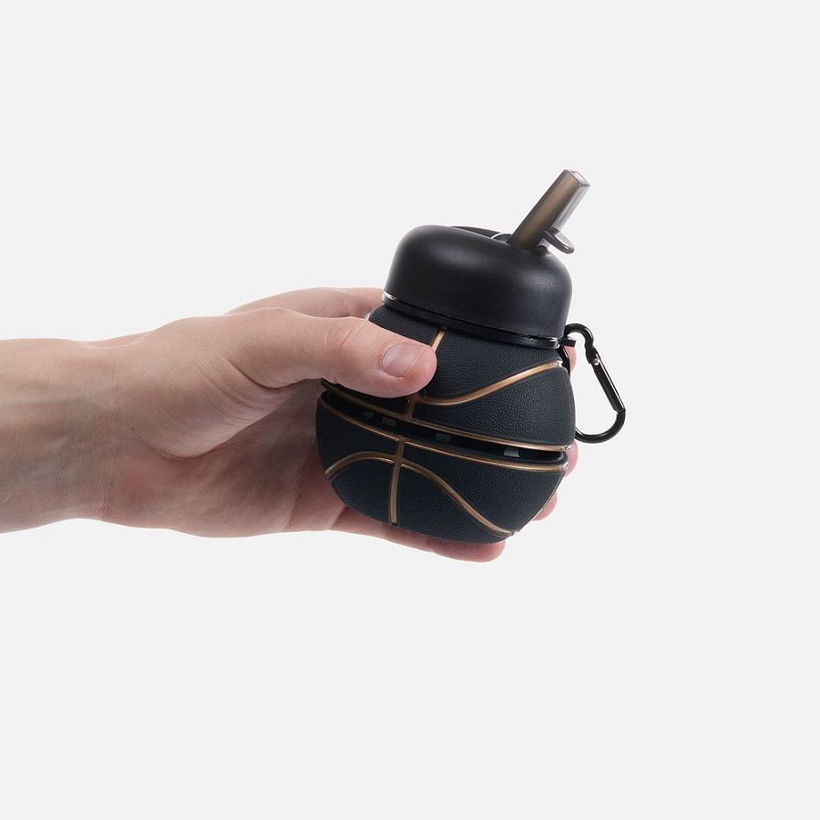 Складная бутылка Basketball Flex — подходящий вариант подарка как для игроков, так и для фанатов баскетбола. За вау-эффект отвечает скрытое нанесение: печать осуществляется на съемном силиконовом кольце в середине изделия и становится заметна, только если раскрыть бутылку полностью.