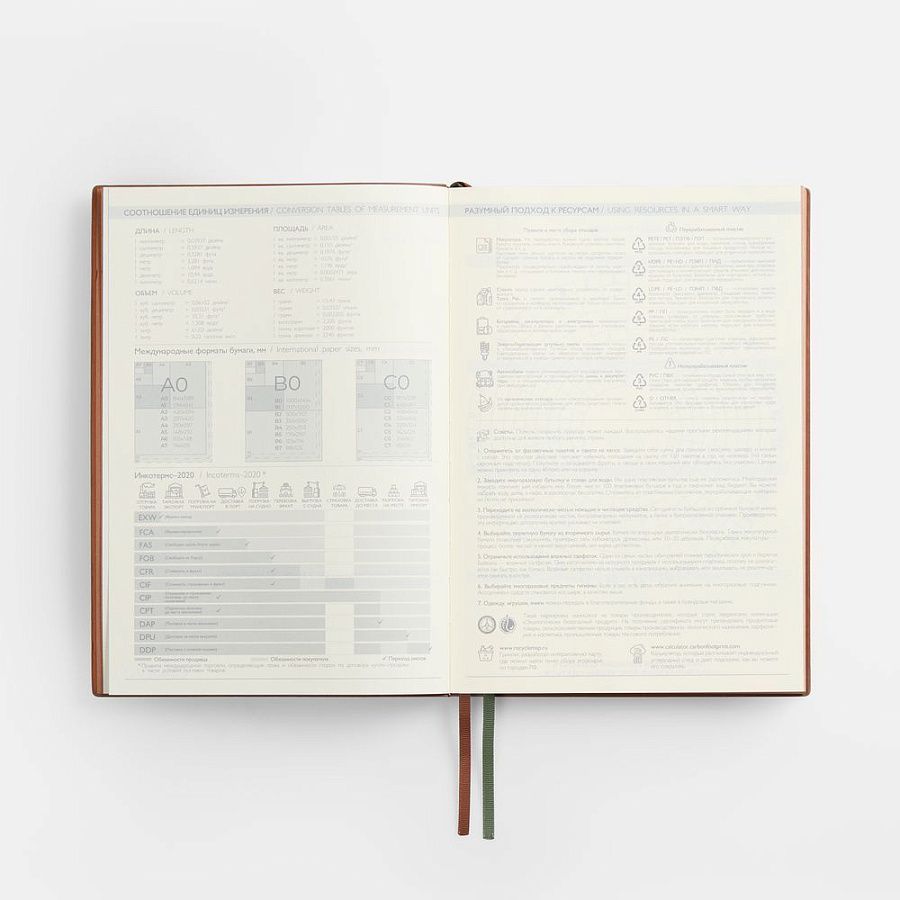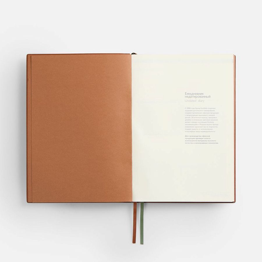 На обложке встречается оттиск от закладки, который разгладится в процессе эксплуатации ежедневника.