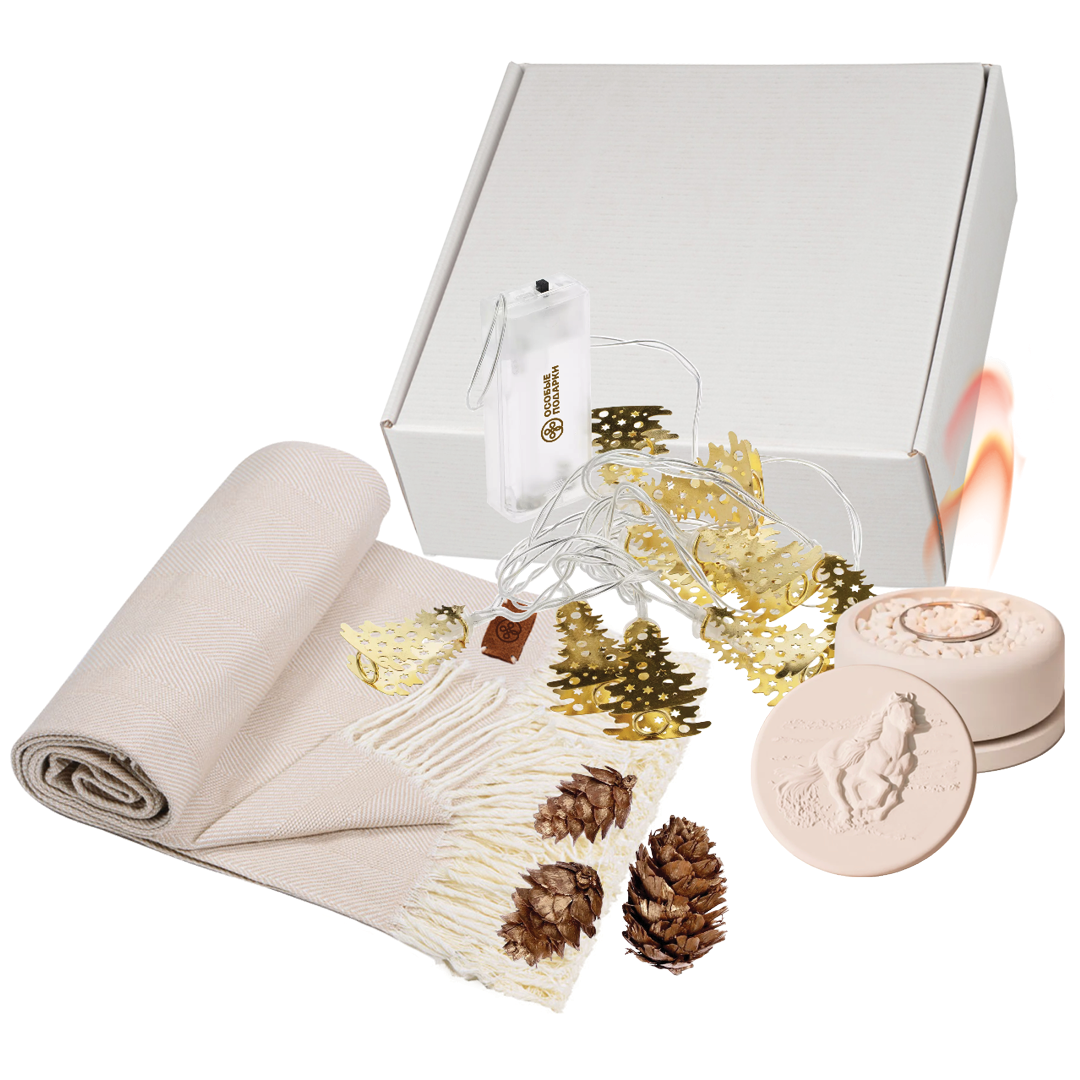 Погрузитесь в атмосферу релакса с нашим подарочным набором. Мягкий хлопковый плед словно обнимает теплом, а биокамин создает мягкое пламя, наполняя пространство уютом и спокойствием. Гирлянда добавляет волшебства и нежных огоньков, превращая любой вечер в особенное событие.