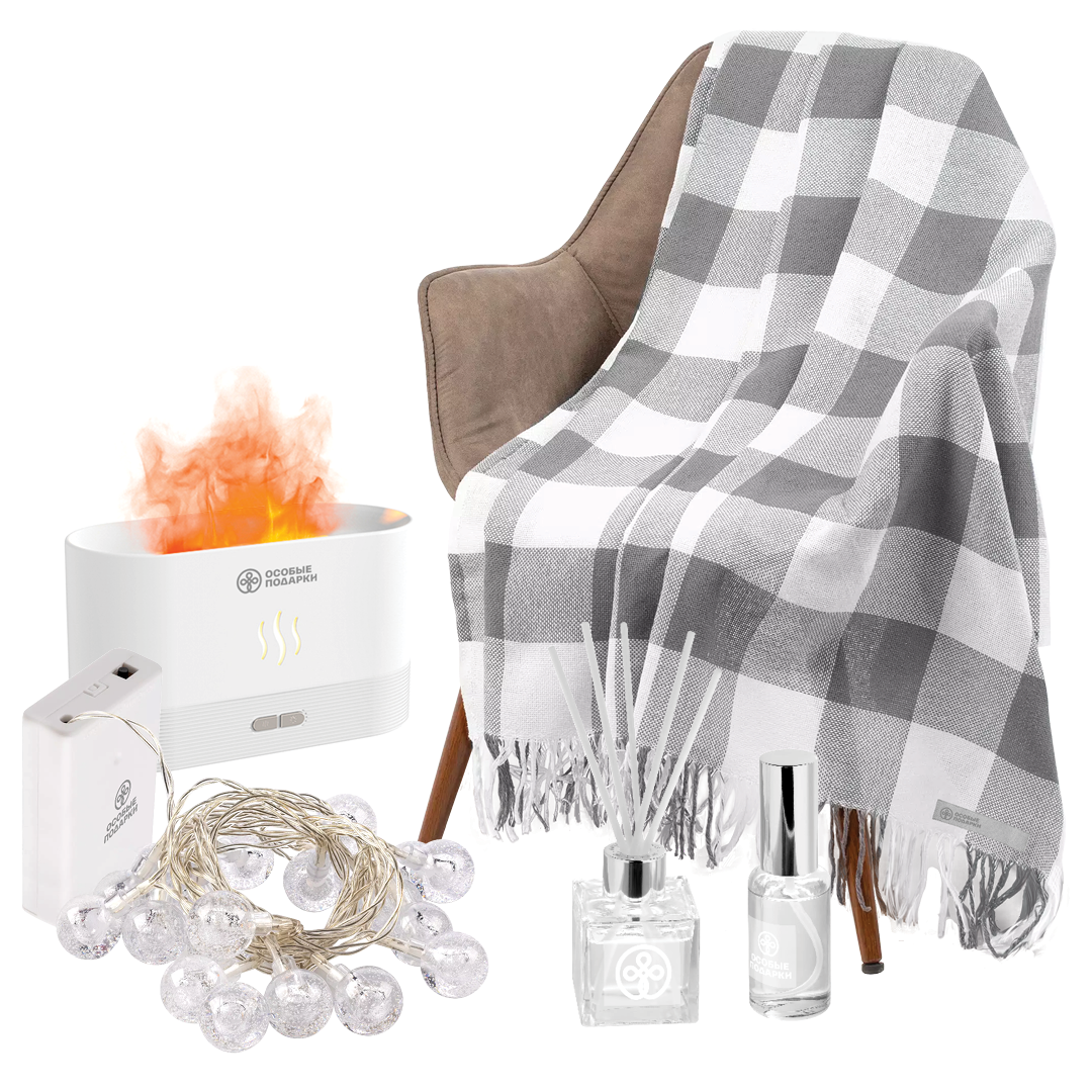 Оазис уюта: мягкий плед, который обнимает теплом, увлажнитель воздуха для свежести и ароматические композиции, наполняющие пространство волшебными запахами. Этот набор превращает любой дом в уютную крепость, где хочется проводить вечера с книгой или в приятной беседе.