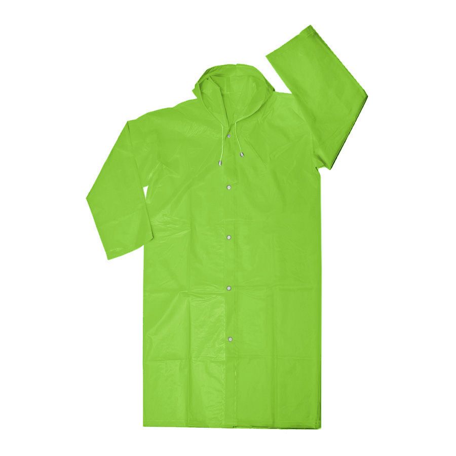 Дождевик "Pure" из непромокаемого материала EVA, толщиной 0,16 мм. Один размер, длина 118 см, ширина под грудью 68 см. Соответствует размеру XL-2XL. Прямой силуэт, втачной рукав, капюшон с завязками. Застёжка на кнопках, капюшон.