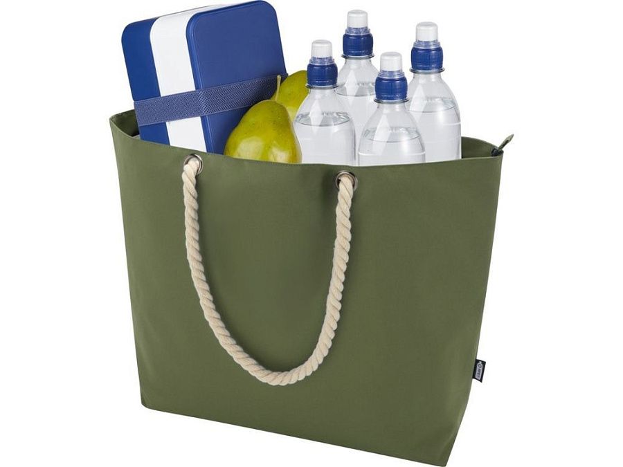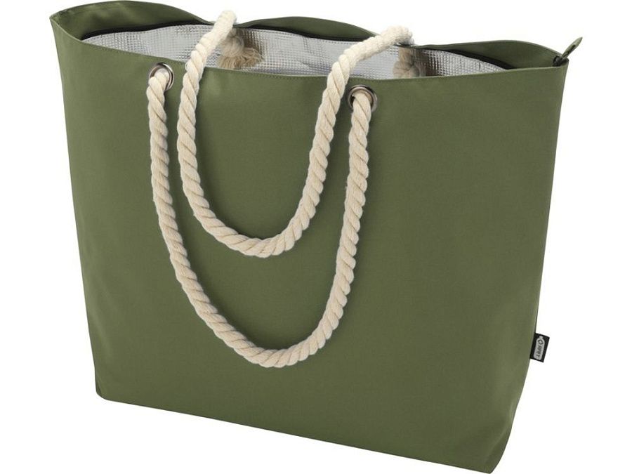 Эко-сумка холодильник Panama изготовлена из переработанного полиэстера, сертифицированного согласно GRS, и имеет большое основное отделение на молнии, а также высококачественную алюминиевую фольгу и ручки из хлопкового шнура. Подходит для различных мероприятий, таких как поход за продуктами или для дня на пляже или в парке. Объем: 23 литр. Выдерживает вес до 10 кг. Не содержит ПВХ. GRS certified recycled polyester.