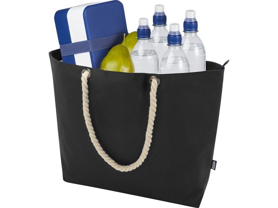 Эко-сумка холодильник Panama изготовлена из переработанного полиэстера, сертифицированного согласно GRS, и имеет большое основное отделение на молнии, а также высококачественную алюминиевую фольгу и ручки из хлопкового шнура. Подходит для различных мероприятий, таких как поход за продуктами или для дня на пляже или в парке. Объем: 23 литр. Выдерживает вес до 10 кг. Не содержит ПВХ. GRS certified recycled polyester.