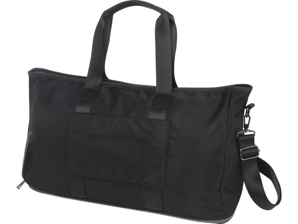 Расширяемая спортивная сумка Rhine легко трансформируется и становится стильной для различных случаев благодаря своему элегантному дизайну и универсальности. Изготовлен из высококачественного переработанного нейлона, сертифицированного согласно GRS, с мягкой подкладкой из переработанного РЕТ-пластика и элементами из высококачественной полиуретановой кожи. В спортивной сумке имеется просторное основное отделение с большим герметичным карманом из термополиуретана, 2 кармана на рукавах, специальное отделение для обуви, надежный потайной карман на задней стороне (также выполняющий функцию ремня для крепления к ручке чемодана) и съемные плечевые ремни, которые можно регулировать для максимального комфорта. Что действительно отличает эту спортивную сумку, так это ее расширяемый слой, объем которого можно увеличить до 42 литров. Емкость: 35-42 литров. Выдерживает вес до 20 кг. Не содержит ПВХ. GRS certified recycled nylon.