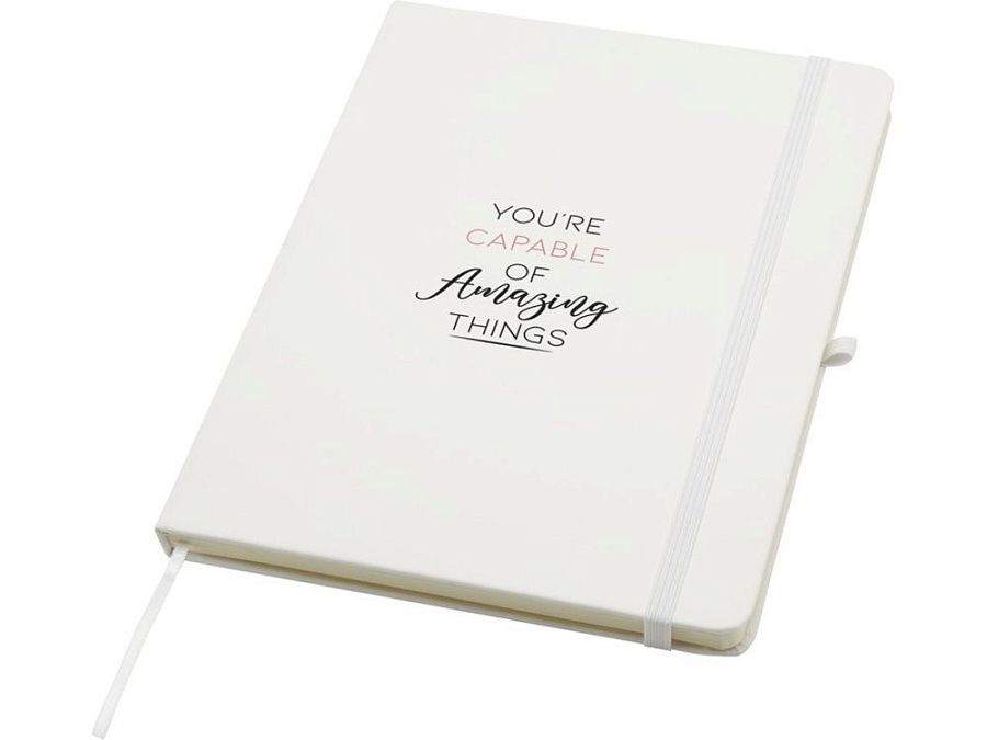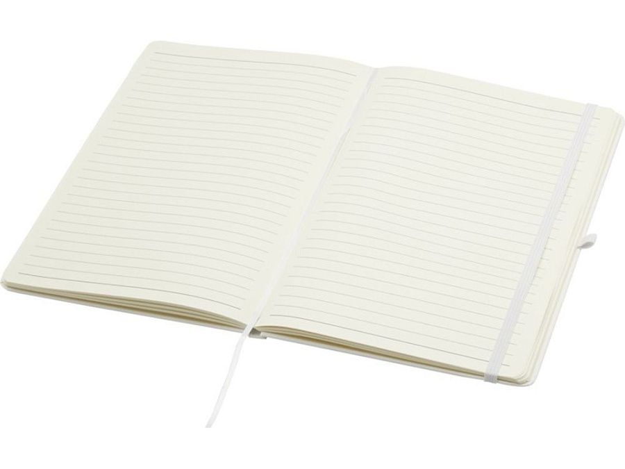 Блокнот Spectrum Plus формата А5 в твердой обложке с закругленными углами — это не только необходимая вещь в офисе, но и прекрасная возможность для продвижения вашего бренда. Картонный блокнот имеет мягкую на ощупь обложку и 80 линованных листов кремового цвета плотностью 70 г/м², идеально подходит для записи быстрых идей или длинных заметок. Блокнот оснащен петлей для ручки, эластичной застежкой, ленточкой-закладкой и карманом-гармошкой.