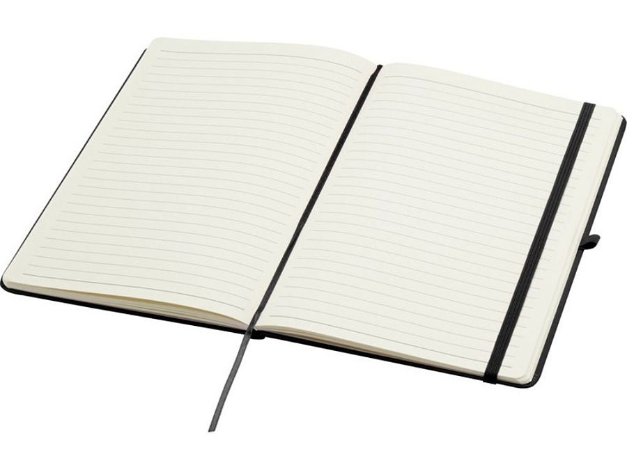 Блокнот Spectrum Plus формата А5 в твердой обложке с закругленными углами — это не только необходимая вещь в офисе, но и прекрасная возможность для продвижения вашего бренда. Картонный блокнот имеет мягкую на ощупь обложку и 80 линованных листов кремового цвета плотностью 70 г/м², идеально подходит для записи быстрых идей или длинных заметок. Блокнот оснащен петлей для ручки, эластичной застежкой, ленточкой-закладкой и карманом-гармошкой.
