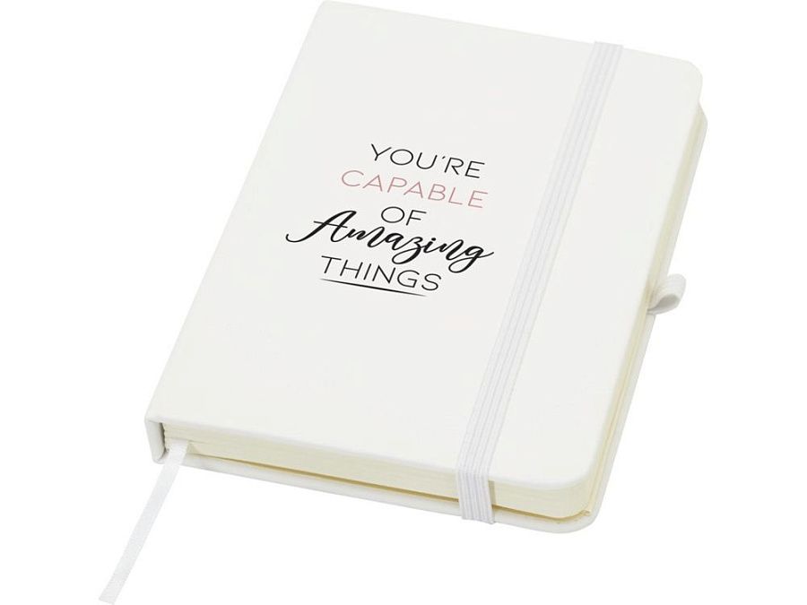 Блокнот Spectrum Plus формата А5 в твердой обложке с закругленными углами — это не только необходимая вещь в офисе, но и прекрасная возможность для продвижения вашего бренда. Картонный блокнот имеет мягкую на ощупь обложку и 80 линованных листов кремового цвета плотностью 70 г/м², идеально подходит для записи быстрых идей или длинных заметок. Блокнот оснащен петлей для ручки, эластичной застежкой, ленточкой-закладкой и карманом-гармошкой.